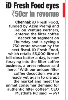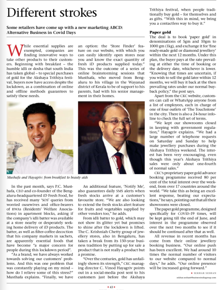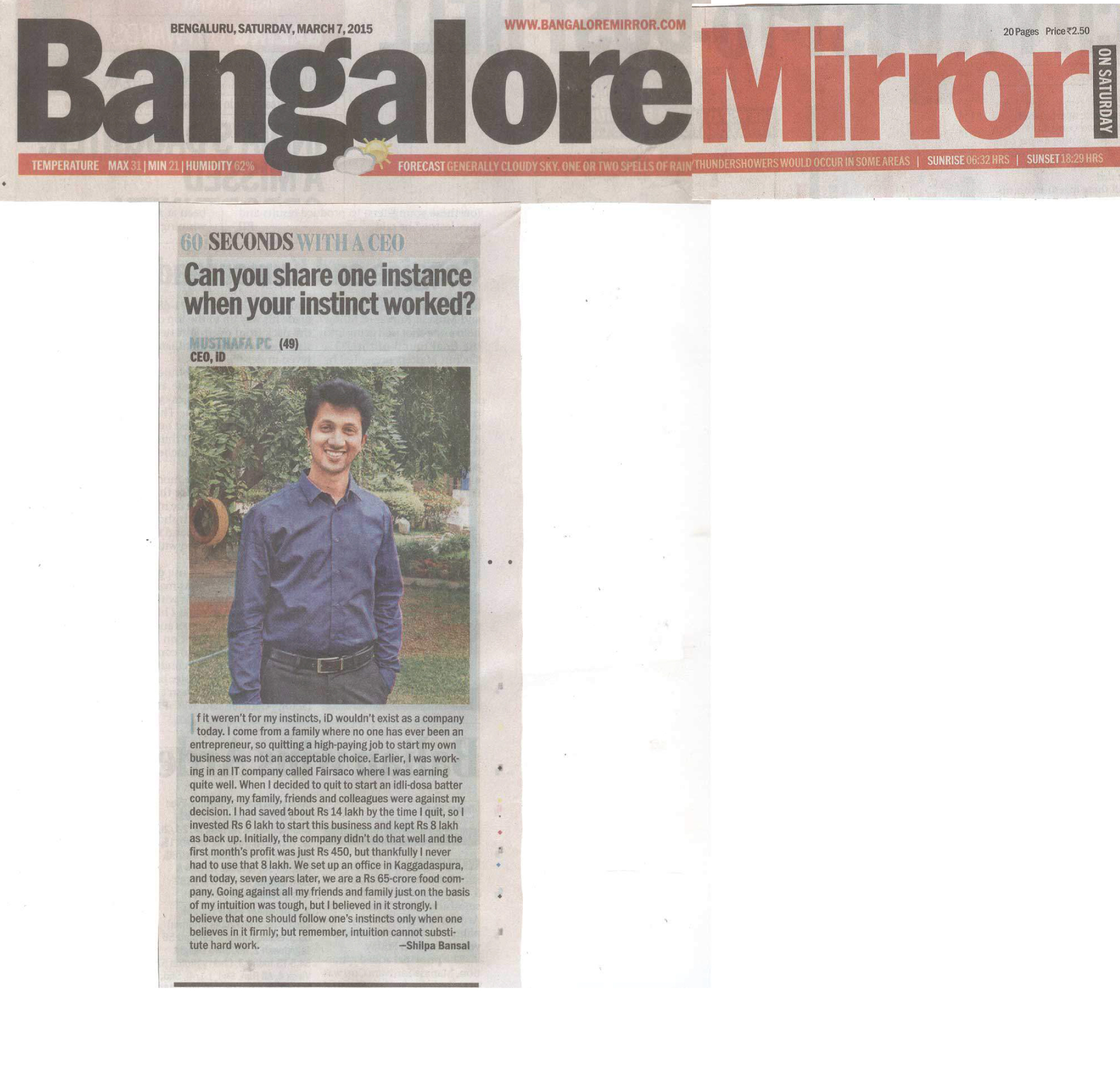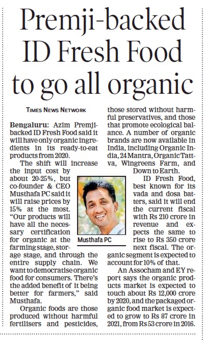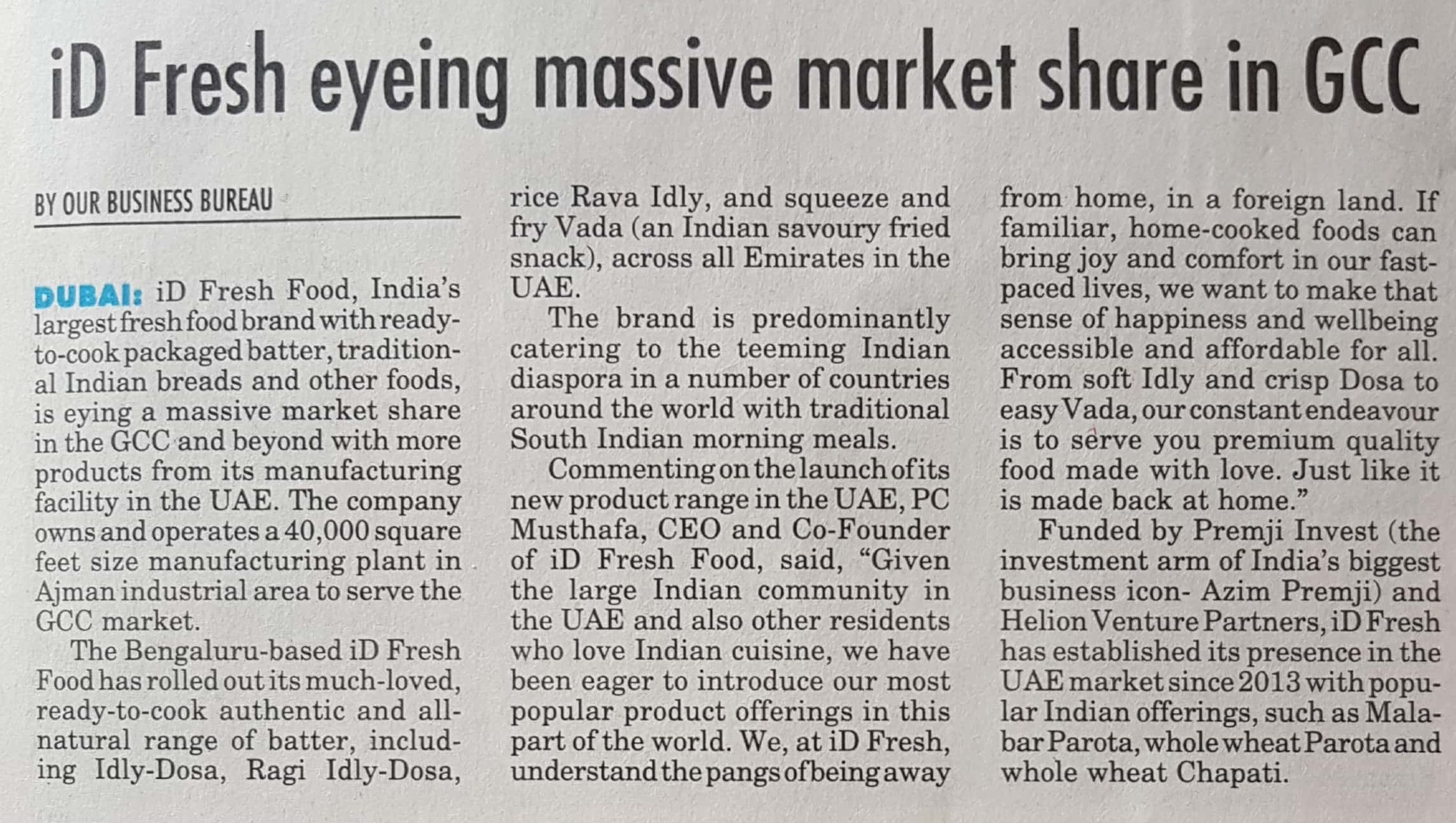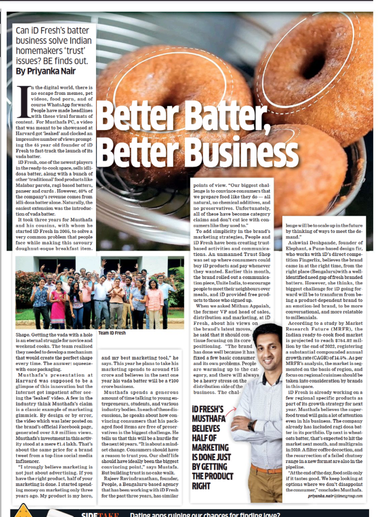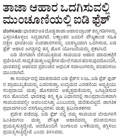 India SME forum in association with Micro, Small & Medium Enterprises (MSME) Government of India, awarded iD Fresh Food as one of the top 100 SME companies in the overall evaluation of financial and non-financial parameters amongst 49023 nominations.