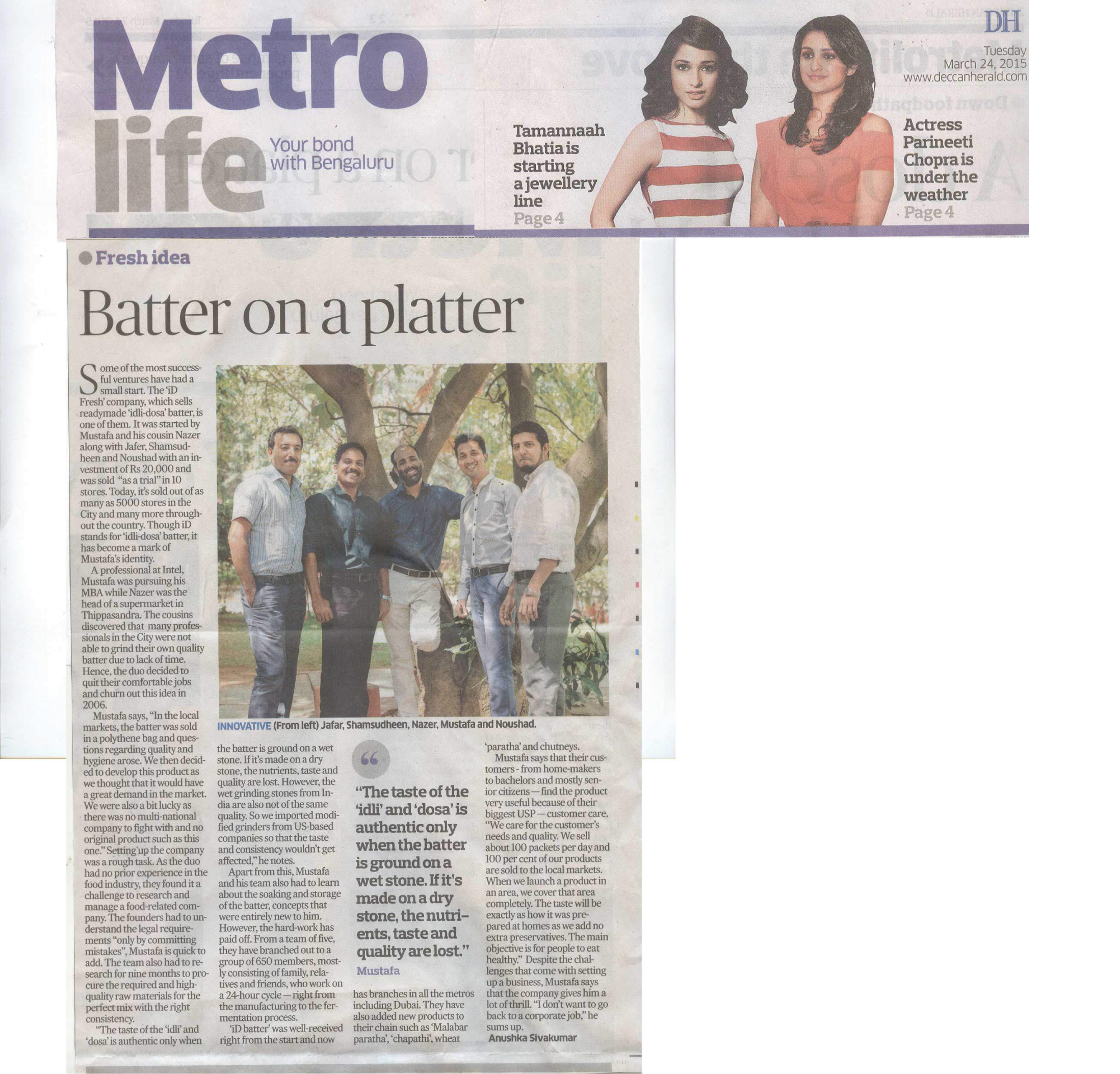 Indian Institute of Packaging (IIP) presented the Indiastar 2015 award to iD Fresh Food for its innovative packaging of its iD Idli and Dosa 1 kg Batter