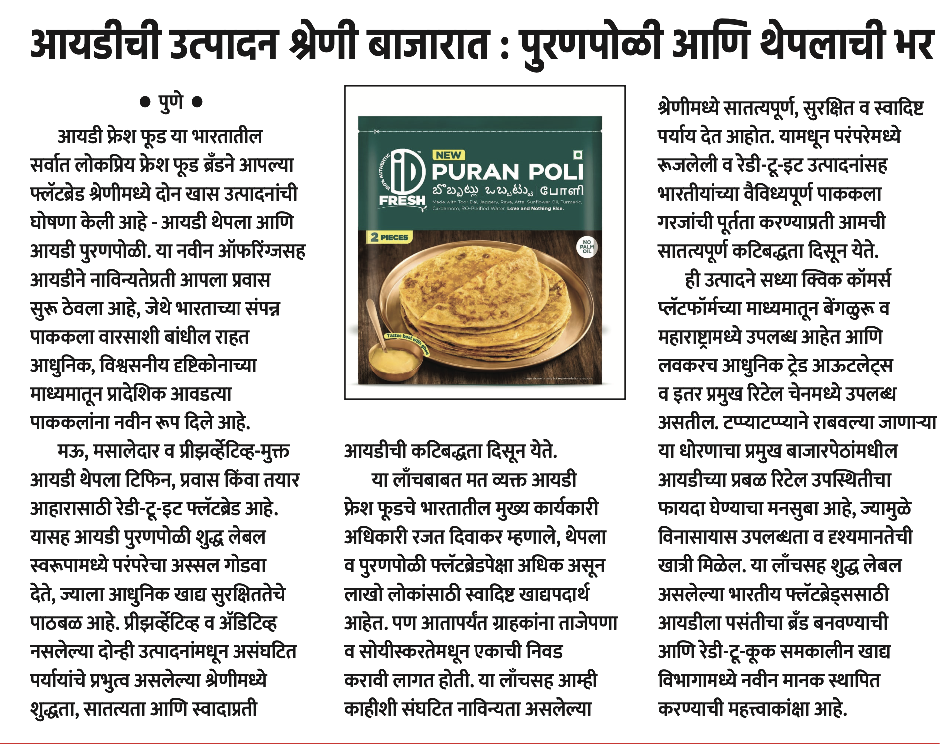 iD Fresh launches flavoured parotas