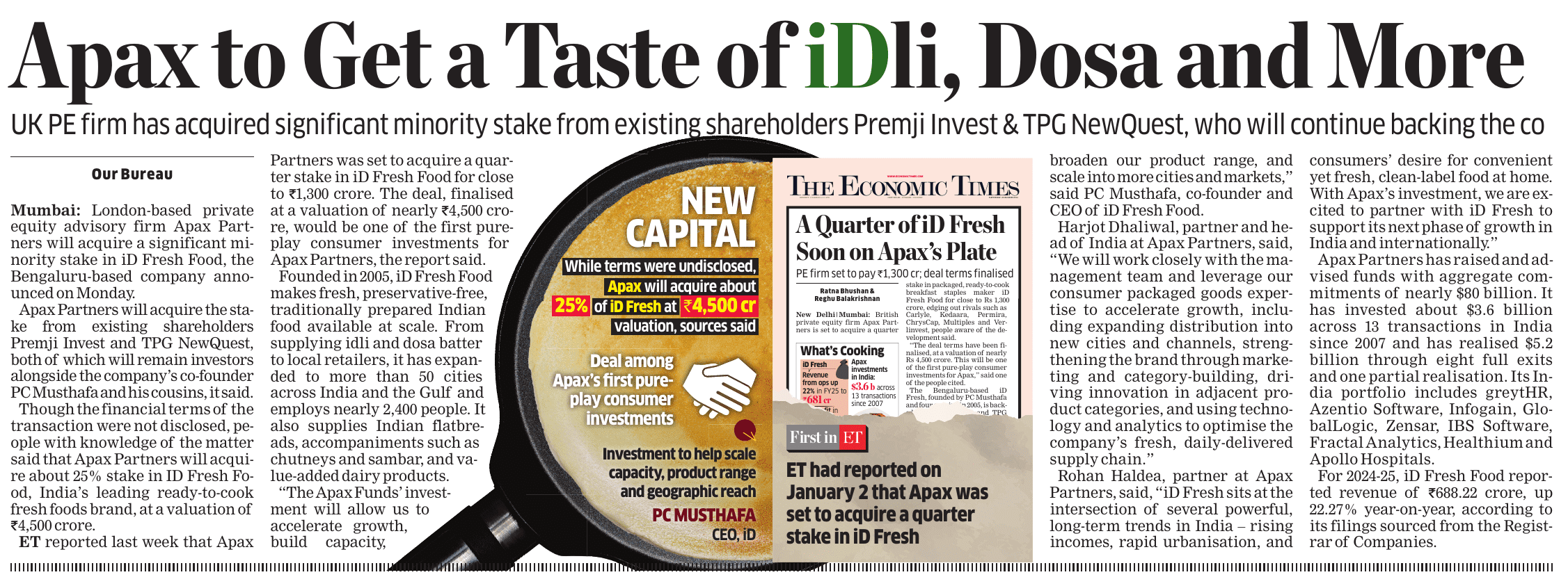 Mint - Apax Funds picks small stake in dosa, foods co iD Fresh