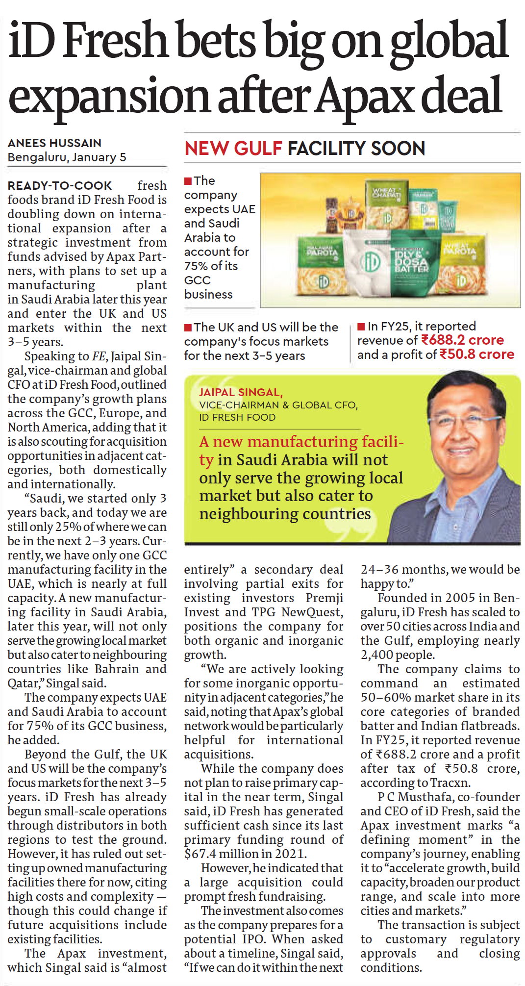 The Financial Express - iD Fresh bets big on global expansion after Apax deal