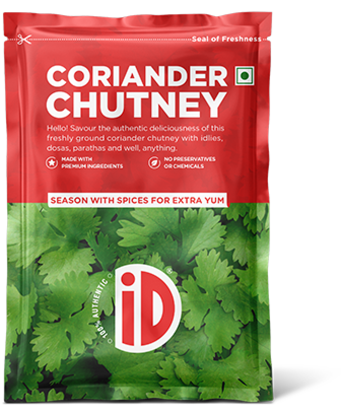 Your meal is now complete. Enjoy crispy dosas and super-soft idlies with delicious, traditionally-made, authentic iD chutneys, in a jiffy! Just snip open the pack, zing it up with tadka if you'd like, and serve with your favourite meal.