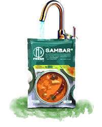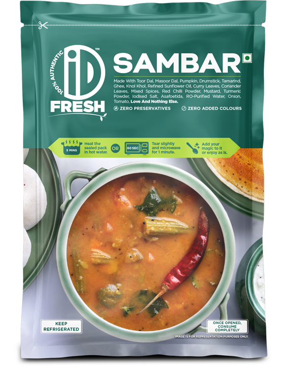 Ready in minutes, iD Sambar is made the homestyle way with fresh, handpicked ingredients. We've done the hard work for you, so all you need to do is heat and enjoy with idlies, dosas, rice, or anything you love! Want to make it your own? Just garnish for a personal touch. With our innovative packaging, we lock in the freshness, flavour, and aroma, ensuring every pack delivers the same homemade taste, time after time.