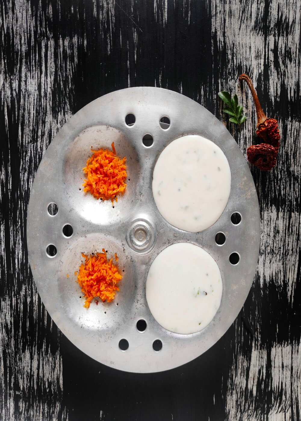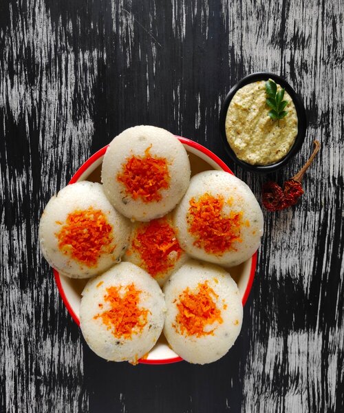 Your carrot idlis are ready to be devoured! You can serve the idlis warm with chutney or sambar.