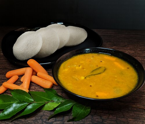- Serve you carrot sambar by garnishing it with coriander leaves.