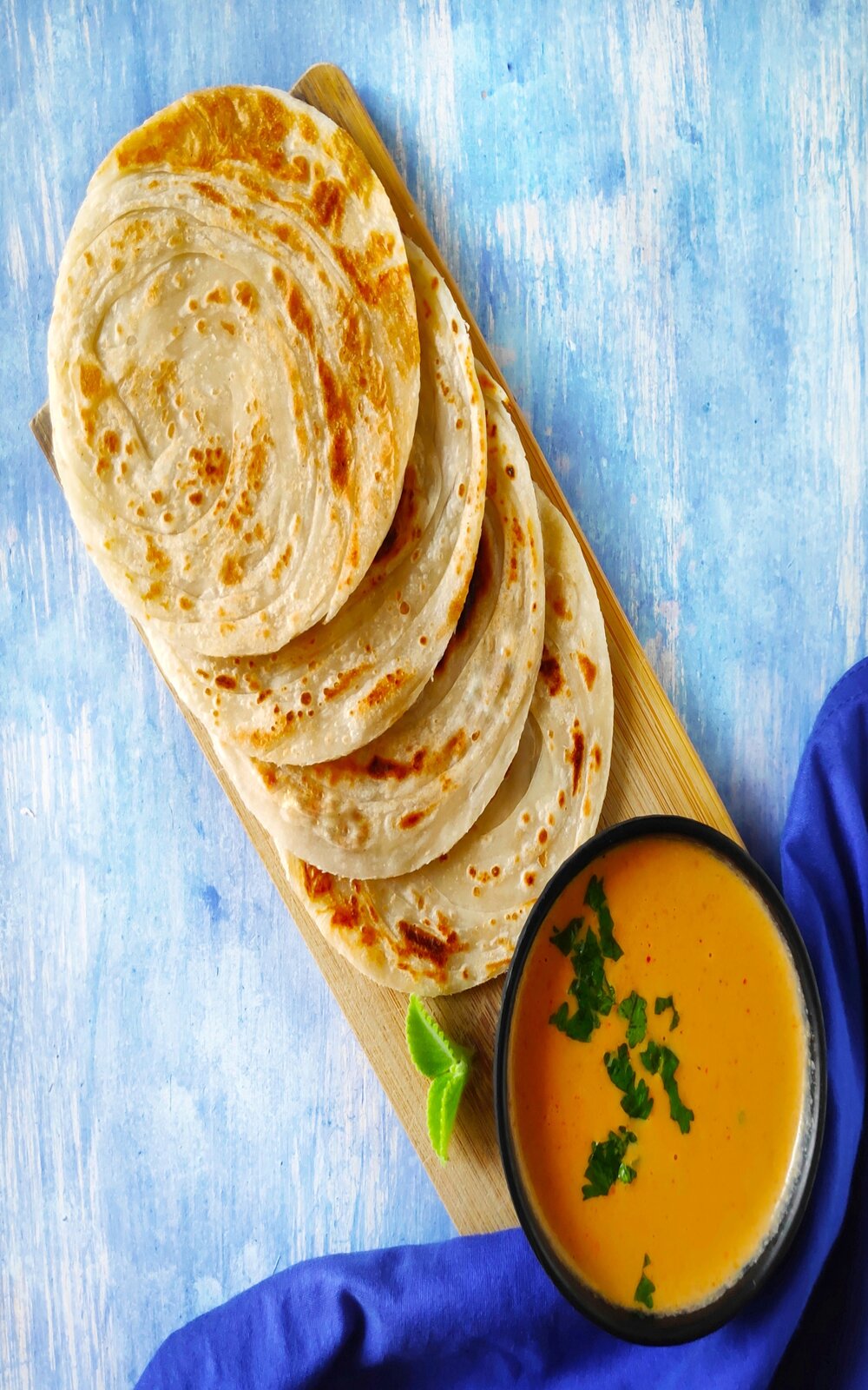 Your Coin parotta is now ready! Relish the taste of crispy bread with a hot curry.