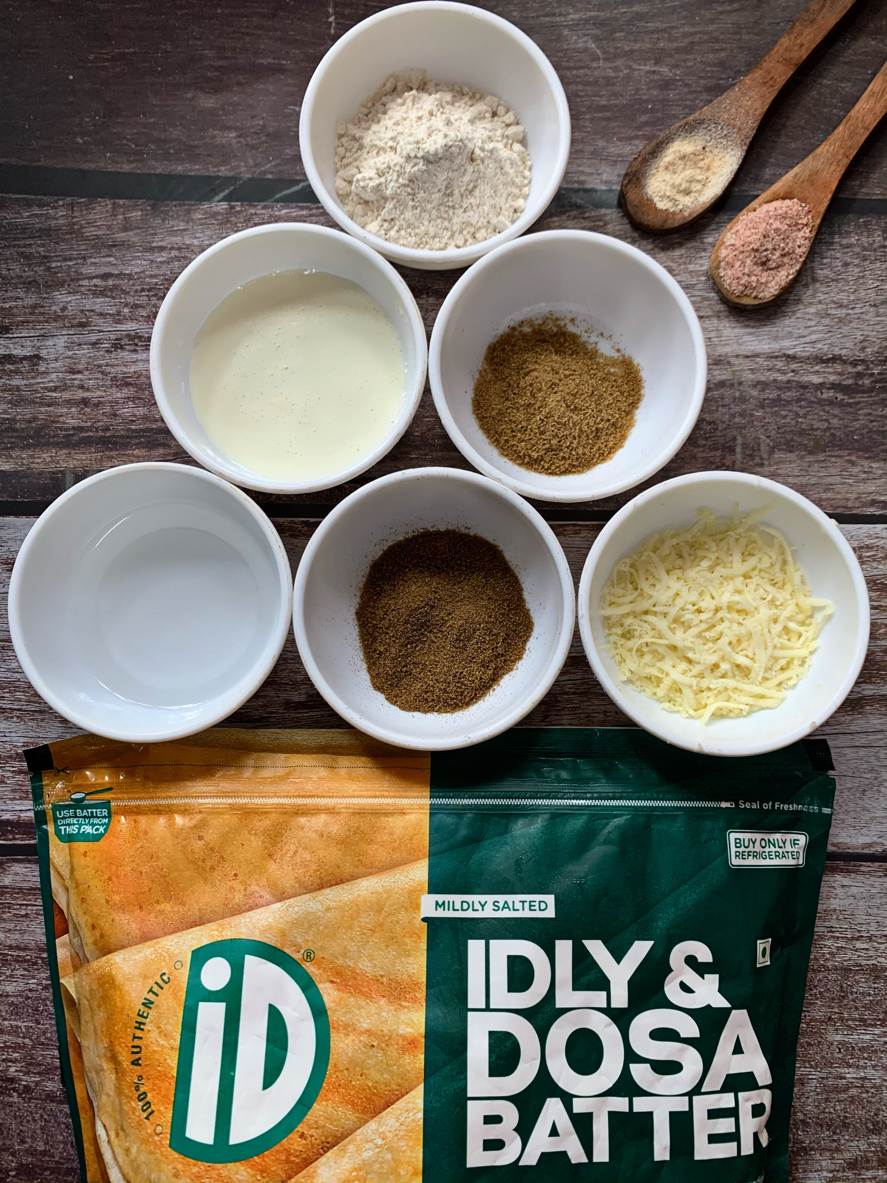 - Pour a generous amount of batter and spread evenly in a circular shape.