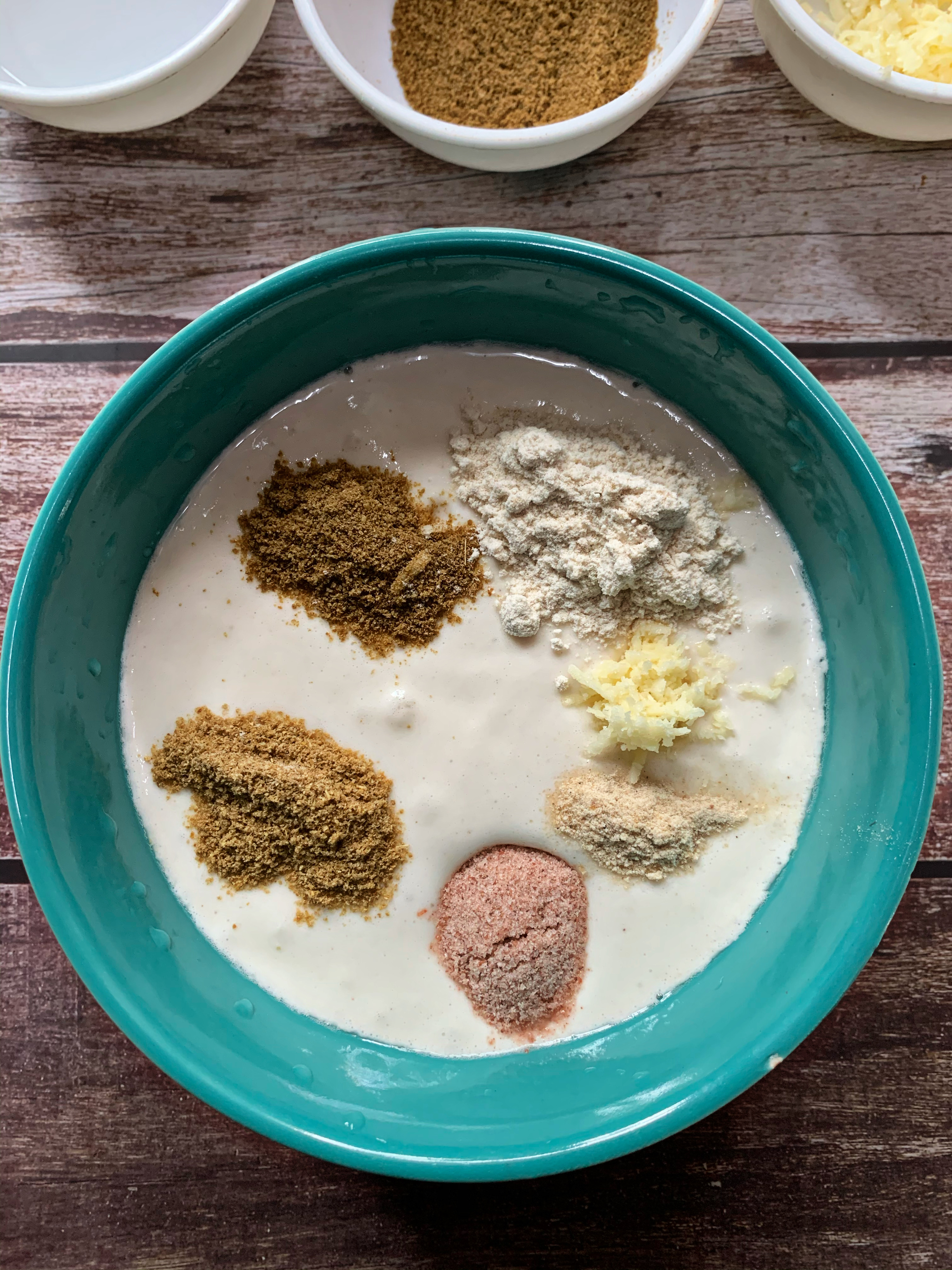 - Mix all ingredients except coconut or olive oil in a bowl, and make sure that the batter is even and poured consistently.