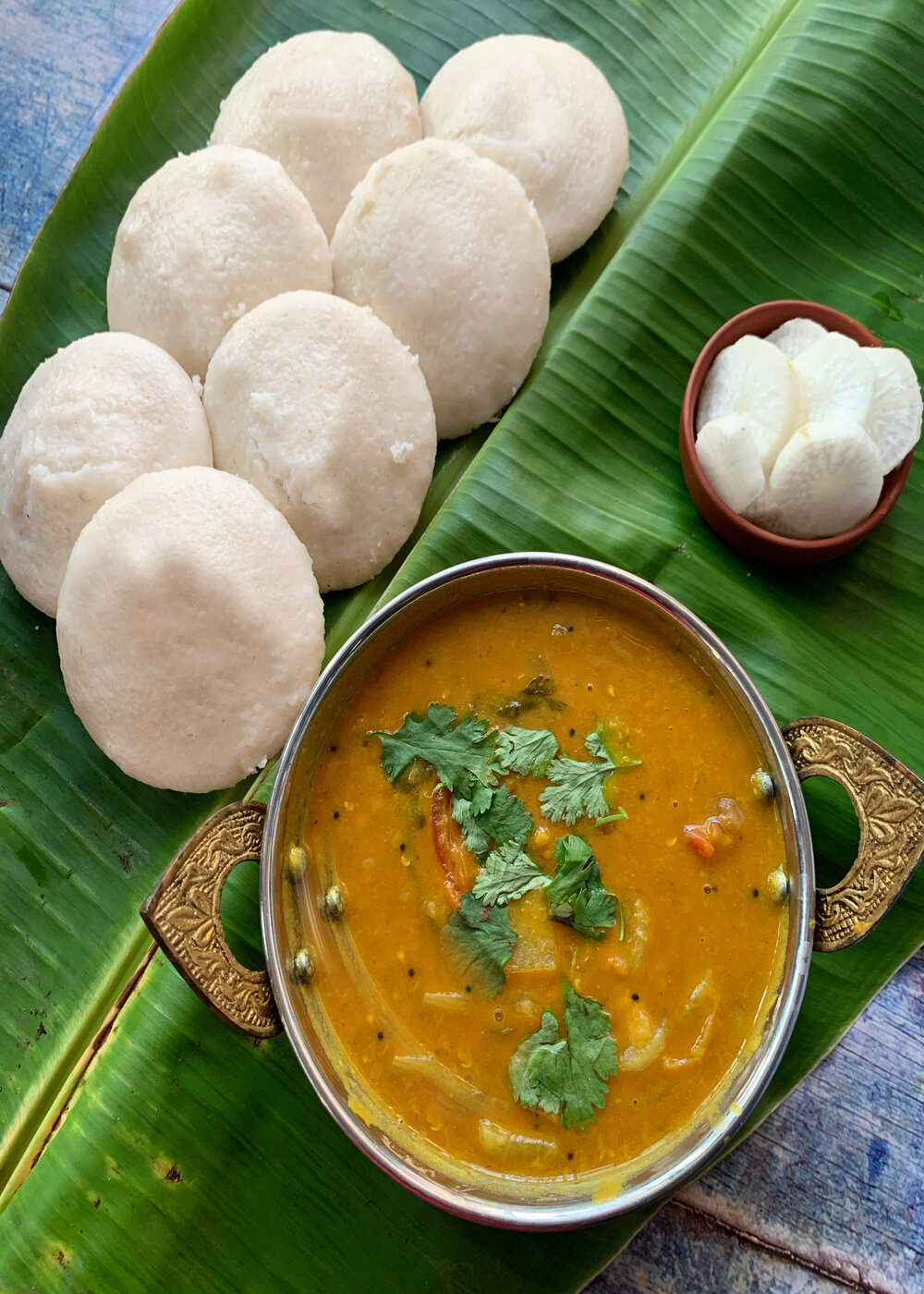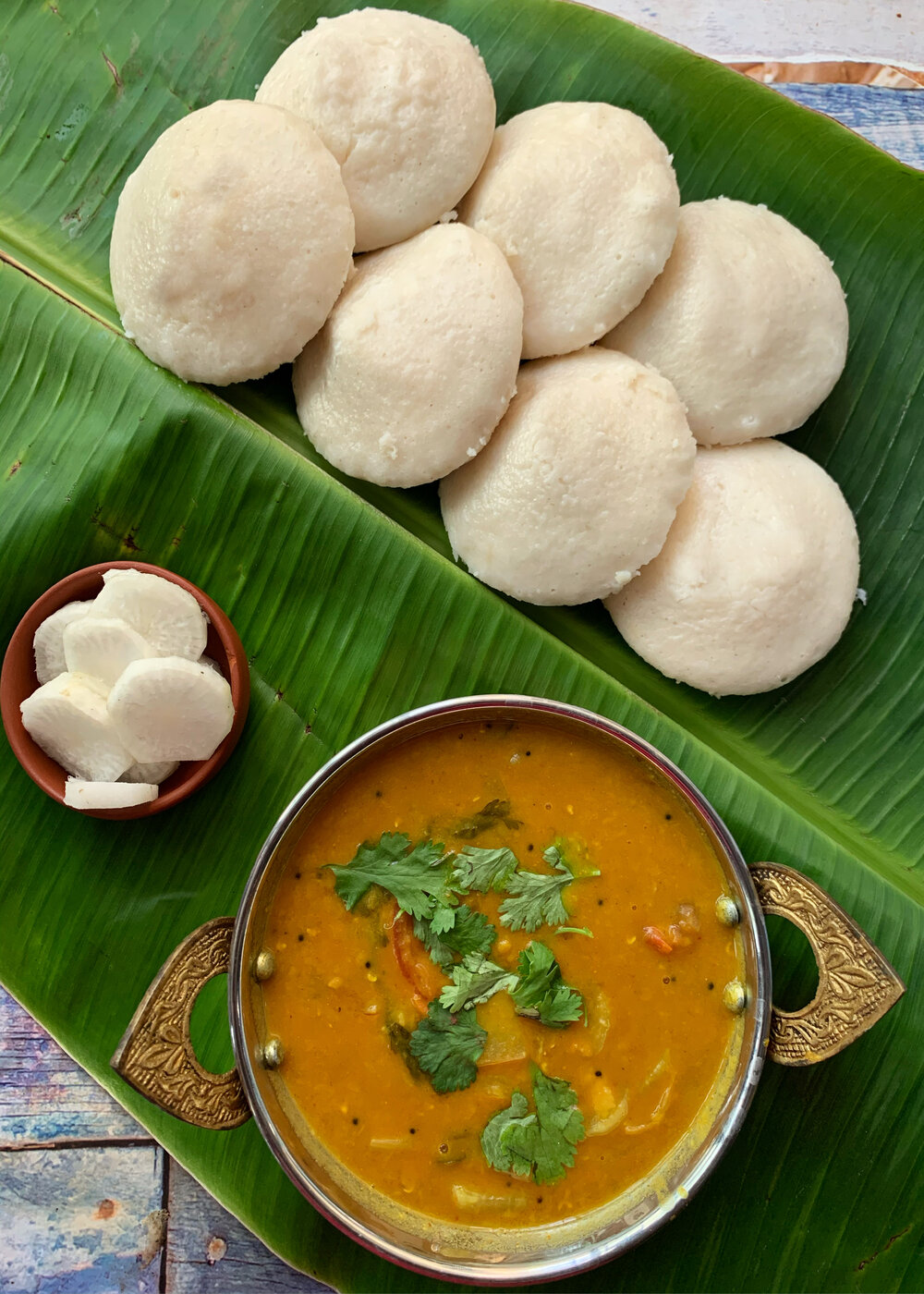Now, you can enjoy this idli sambar in Tamil style at home. Savour this tasty and healthy Mullangi sambar with hot, steaming idlis.