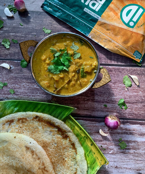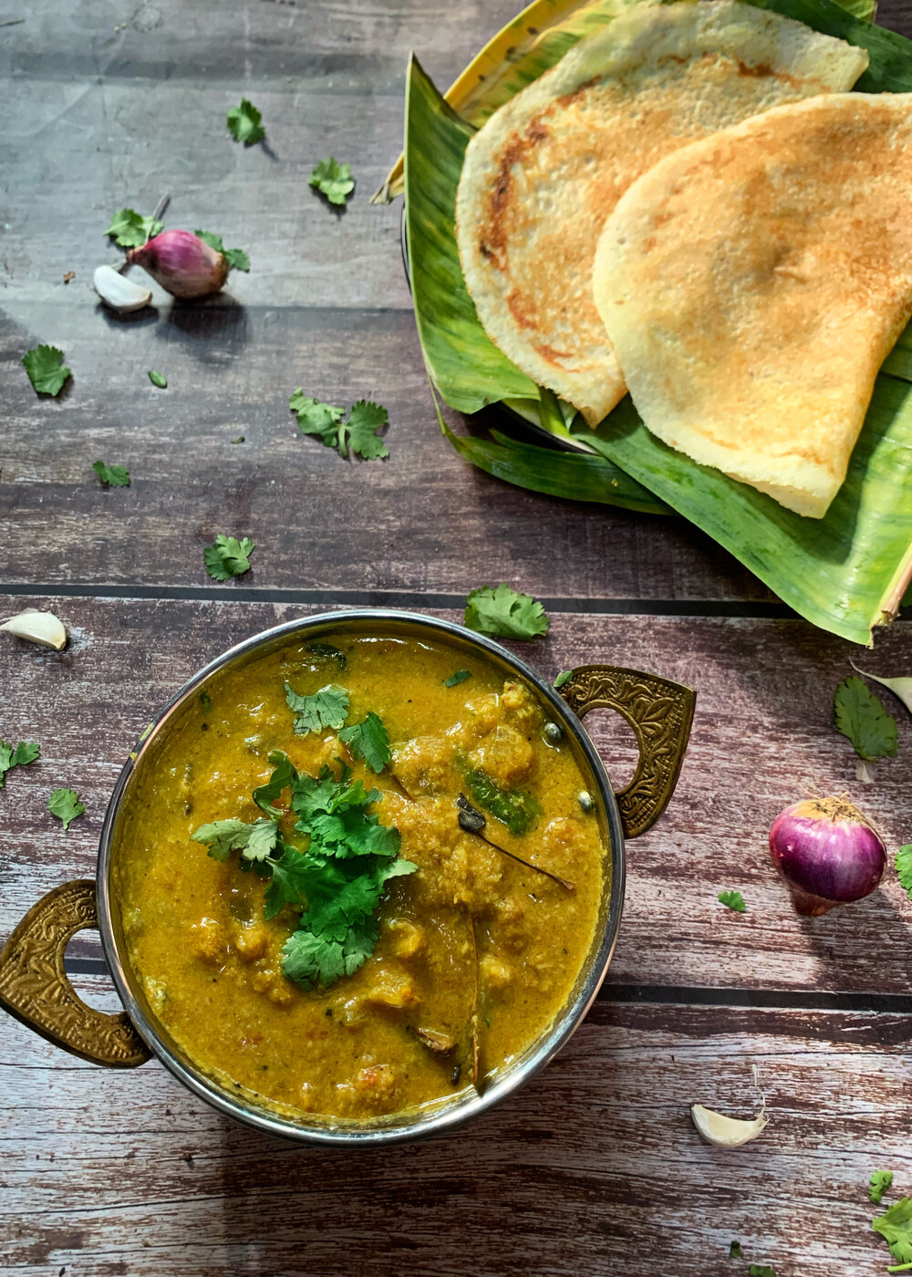 A dash of lemon juice elevates the flavours of this dosa side dish. You can add a few drops before serving it with dosas or idlis. This kurma is also the perfect match for a piping hot bowl of fluffy rice with your favourite pickle on the side.