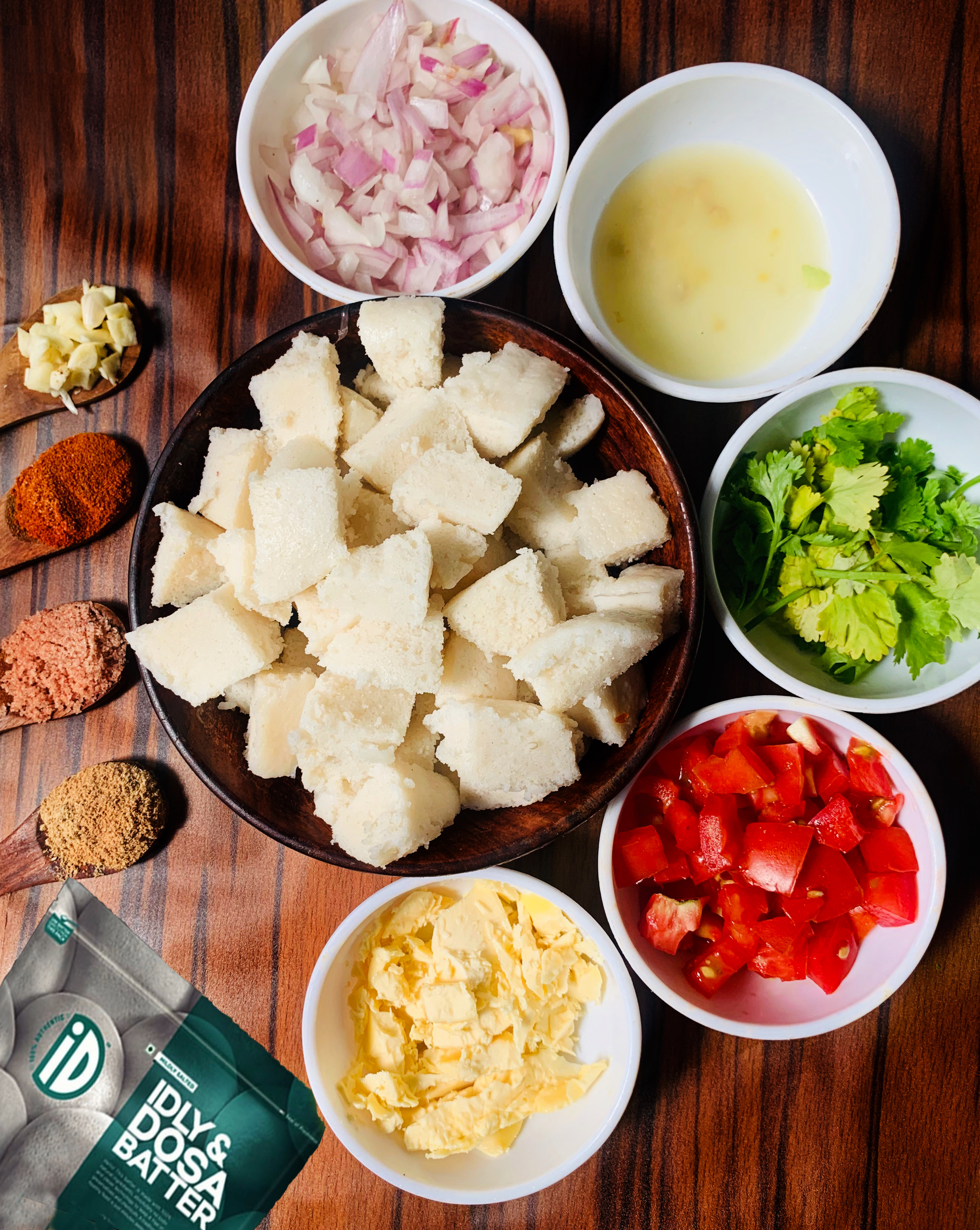 Spicy tava idlis are ready to be served. The tava idlis pair well with coconut chutney or tomato garlic chutney. They taste as good cold as they taste when served warm.