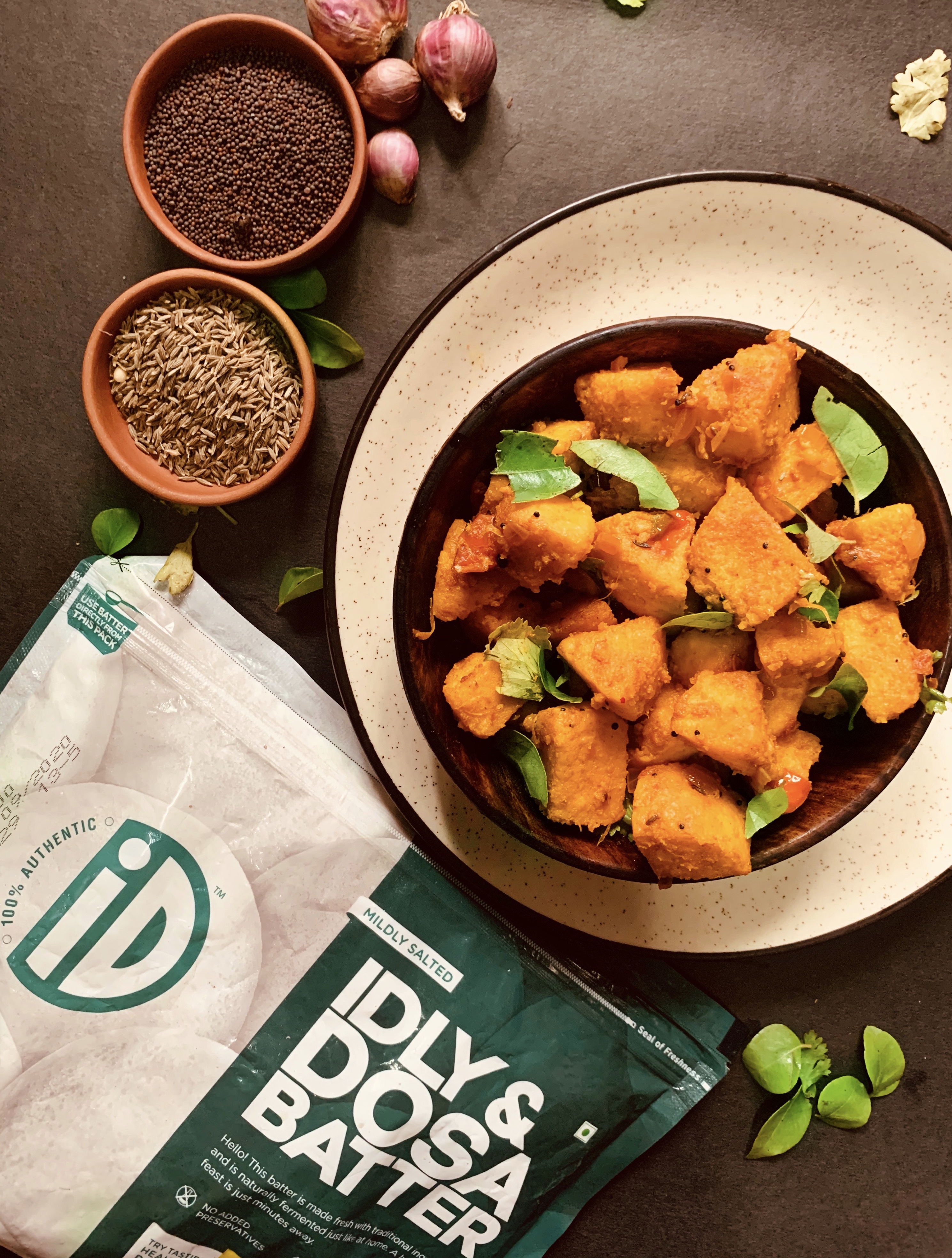 - If you use frozen idli, then they will be easier to cut and toss in the pan because freshly