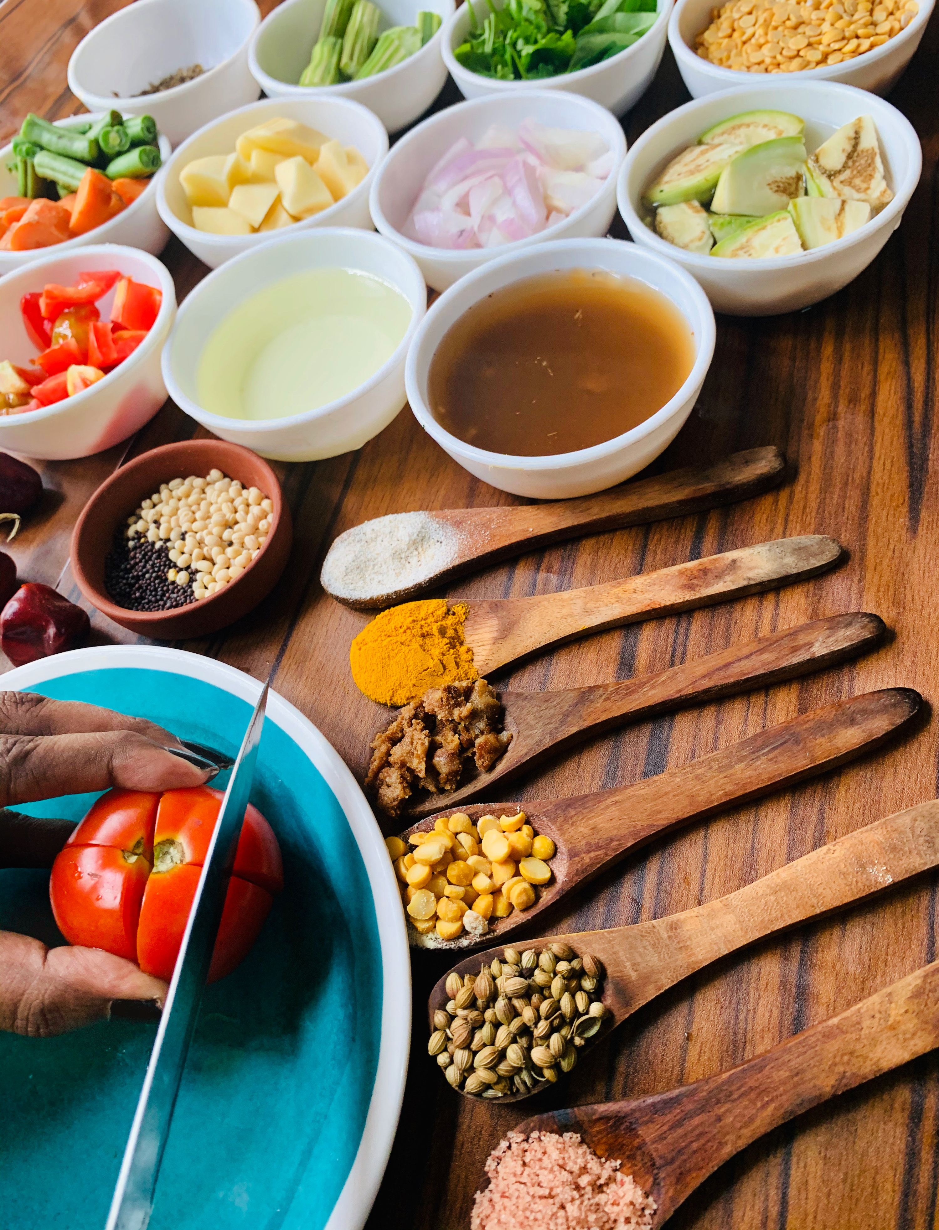 - Add 1.5 tablespoon of sambar powder and let the mixture boil.